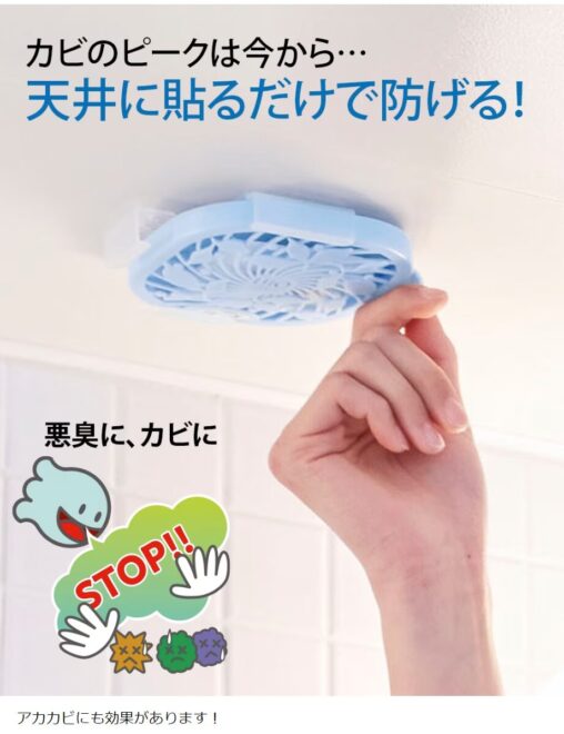浴室の天井にぺたっと貼るだけで、クロカビやアカカビの発生…