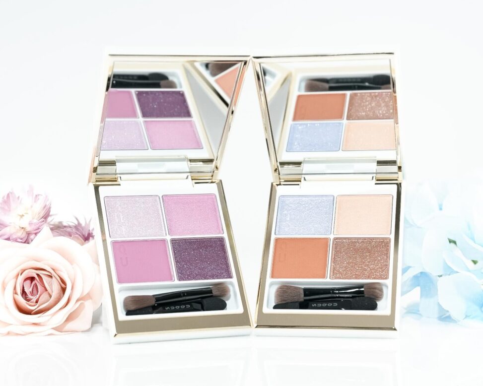 今回のコフレは「メイクアップ キット 舜華(しゅんか)」と「光飾(ひかりかざり)」の2種類。いずれもブランドを象徴する4色アイシャドウ「シグニチャー カラー アイズ」と、リクイドチーク「デューイー リクイド ブラッシュ」の限定色がセットになっている。雪のように真っ白なパッケージも特別感を演出。