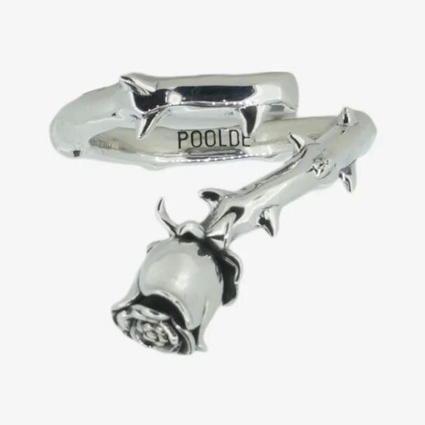 もう一方の「THORN WRAP RING」は、バラの蔓と棘に着想を得た力強いデザイン。花言葉“不幸中の幸い”をテーマに、ネガティブな状況の中にも希望を見出すメッセージが込められている。立体的に造形された棘のフォルムは、まるでアーマーリングのような存在感を放ち、指先に強さと優雅さを同時に宿す。