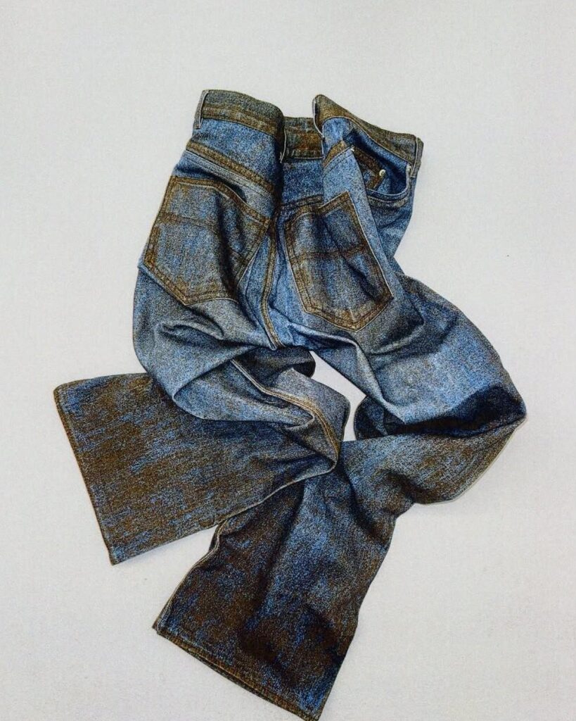 特にデニムシリーズは、陰影や擦れをリアルに再現する「トロンプルイユ(騙し絵)」技法を駆使したアーティスティックな仕上がり。新色や新加工を加えたジャケットやパンツが登場し、ブルーデニムをベースに裾やポケットをブラウンでペイントした遊び心あるデザインが目を引く。