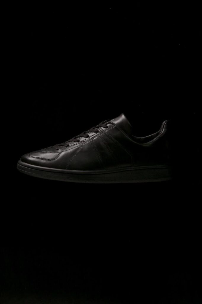 両ブランドによる協業は、2021年の「マルチミリタリートレーナー」に続き2度目。今回のコラボレーションでは、元L’ECHOPPEのコンセプター・金子恵治が発案した“裏ジャーマン”のアイデアをもとに、リプロダクションオブファウンドが得意とするジャーマントレーナーをベースに再構築した。名前の通り、シューズの構造を“反転”させたユニークな一足だ。