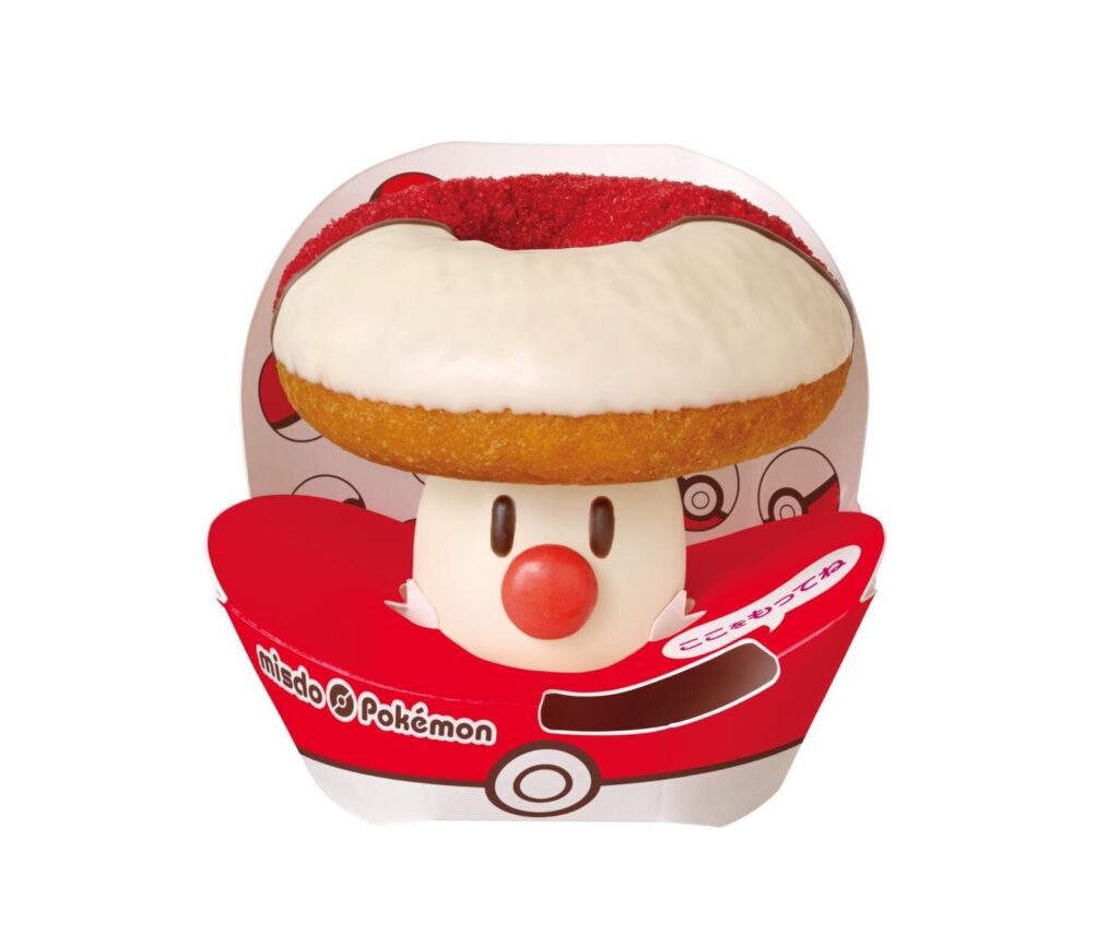 また、初登場の「タマゲた! タマゲタケ ドーナツ」は、見た目も楽しい苺チョコ仕様。しっとりとしたケーキドーナツ生地にホワイトチョコとストロベリーチョコを半分ずつコーティングし、モンスターボールのような“きのこの傘”を再現している。顔の部分はホイップ入りのシュー生地を使用し、ホワイトチョコでコーティング。チョコレートで描かれた目と口が、キャラクターの個性をしっかり表現している。