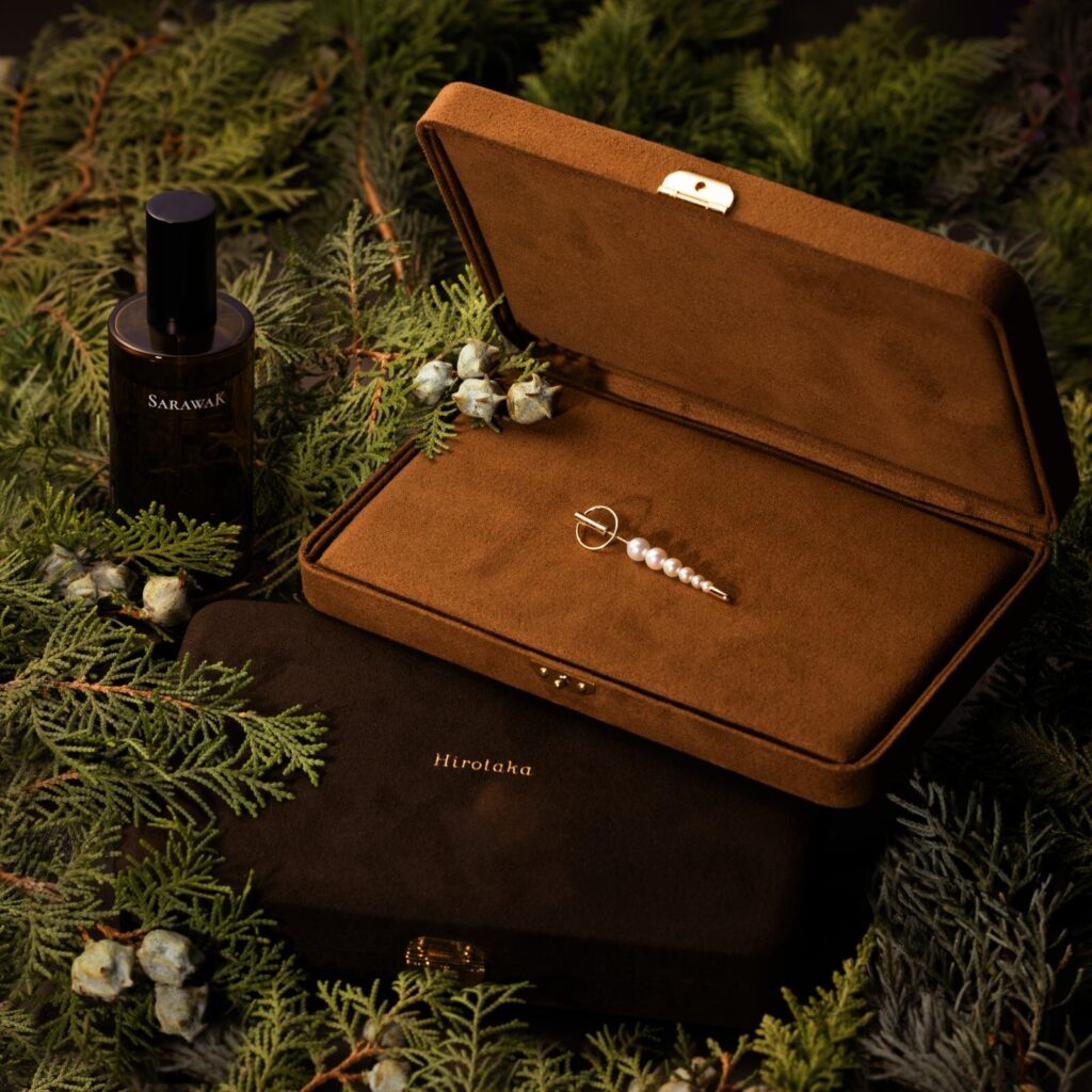 セットには、深みのあるブラウンカラーと温もりのある素材を組み合わせたオリジナルジュエリーケースが付属。コンパクトながらも高級感あふれるデザインで、大切なジュエリーをしっかりと保護してくれる。そして今回初めて登場するピローミスト「SARAWAK」は、深い密林を思わせる神秘的な香り。蘭やスパイス、アンバーが重なり合い、ゆるやかに空間を包み込むように広がる。枕元や部屋にひと吹きするだけで、穏やかで豊かな時間を演出できる。