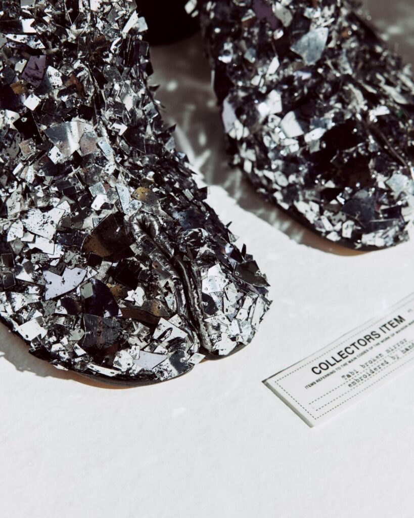 今回の限定モデルは、「タビ」コレクターズ シリーズの第1弾として誕生。メゾンが長年追求してきた“クラフトマンシップと前衛性の融合”を体現した1足だ。テーマは、時間の経過とともに表情を変える「ブロークンミラー」。割れた鏡の断片のように光を反射するメタリックな刺繍が、立体的な輝きを放つ。
