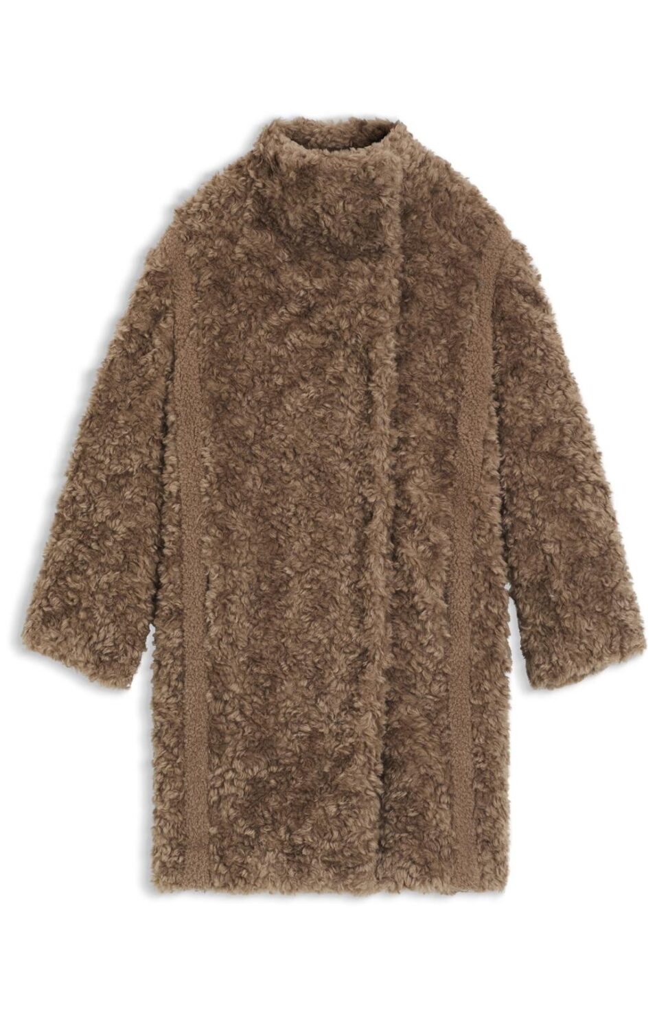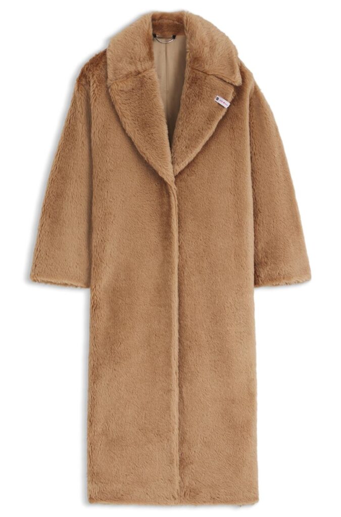 また、ウィメンズ・メンズともに展開されるロングコートは、ウールとコットンをブレンドした上質な素材で仕立てた一着。柔らかな起毛感と軽やかな着心地が特徴で、見た目にもテディベアのボディを思わせる温かみのある質感に仕上がっている。襟元にはシュタイフのホワイトタグを配し、細部までブランドの世界観を反映した。
