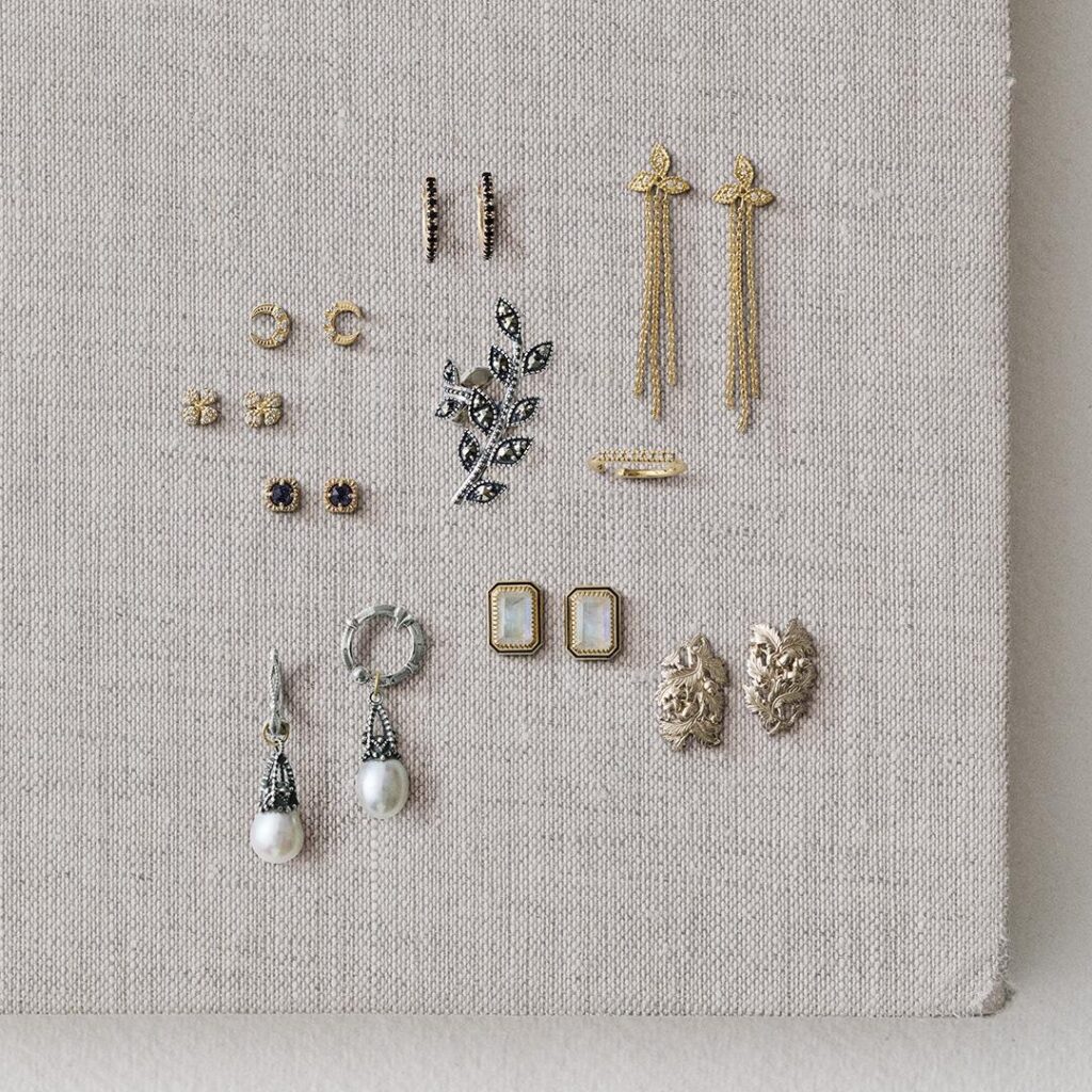 ピアスとイヤーカフには、植物や月をモチーフとしたデザインが登場。華奢なチェーンを組み合わせたスタイルや、シンプルなフープタイプなど、バリエーション豊富なラインナップとなっている。大きさや形の異なるアイテムを重ね付けして、自分だけのバランスを楽しむこともできる。