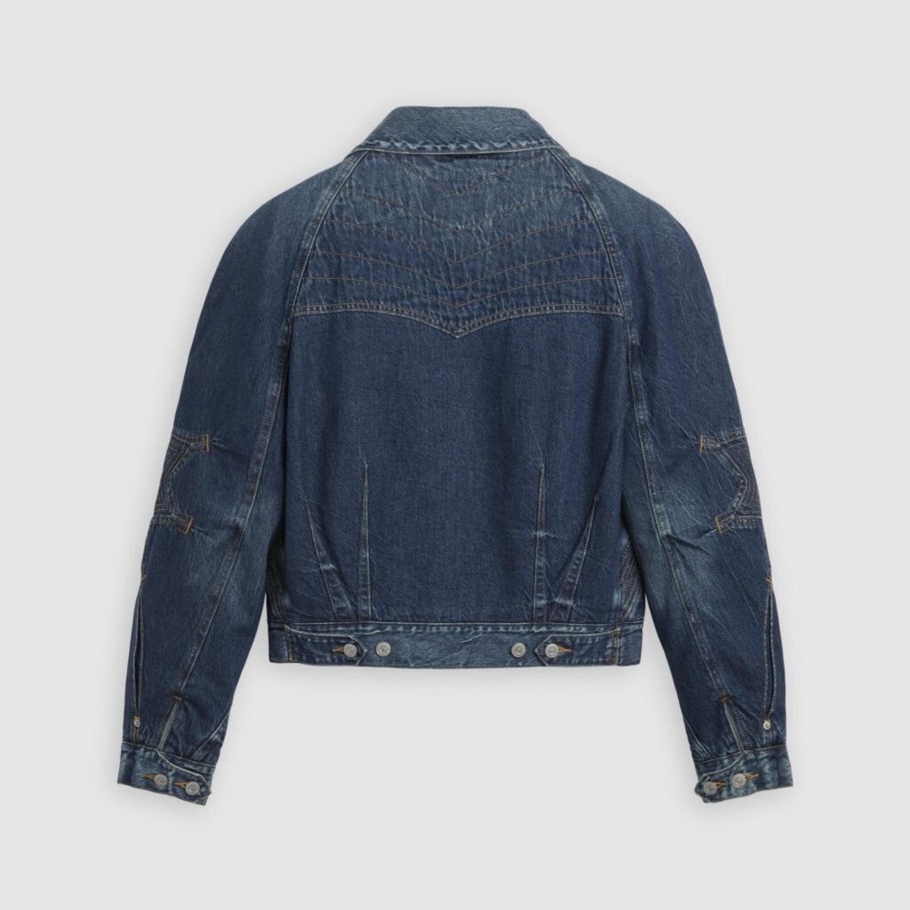 ラインナップの中心となるのは、リーバイスのアイコンであるトラッカージャケットを再構築した「アーティキュレイト ジャケット」。軽量な10オンスのブルーデニムを使用し、ヴィンテージのような風合いを生み出す加工を施した。胸ポケットのクラシカルな形状や、一本の糸で丁寧に仕上げたトップステッチが繊細な職人技を感じさせる。袖口へ向かう控えめなプリーツが立体感を生み、キコらしいモダンなシルエットを完成させている。
