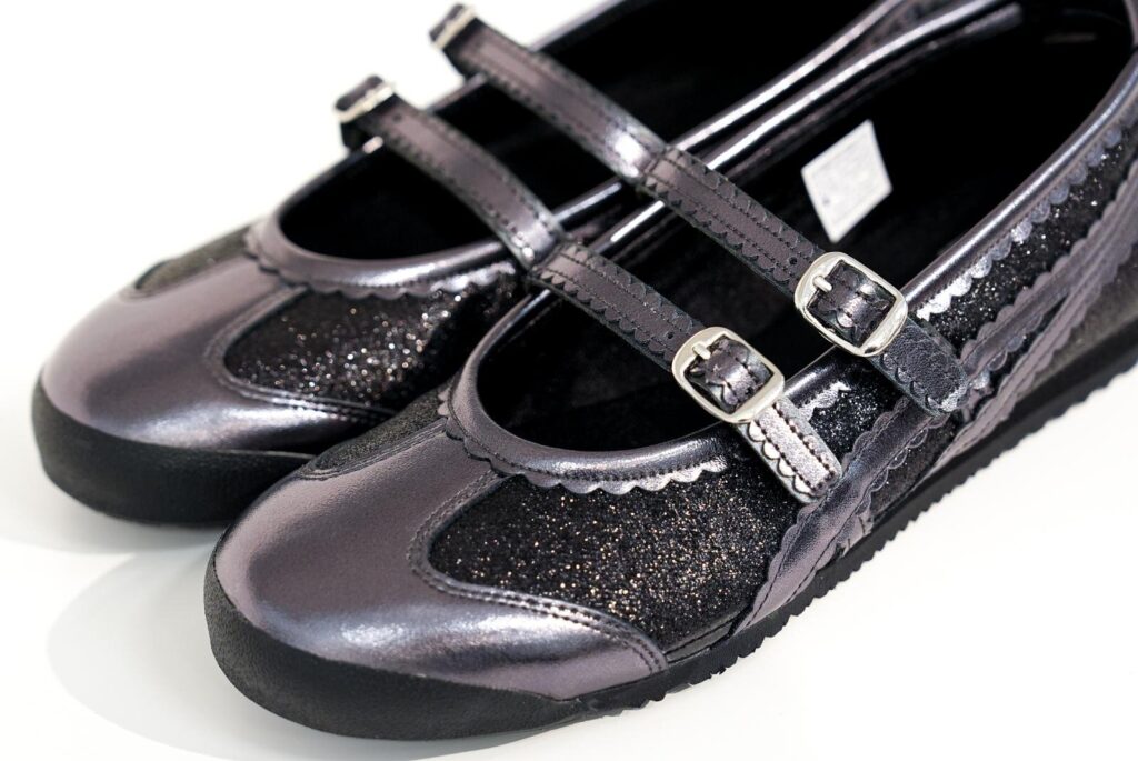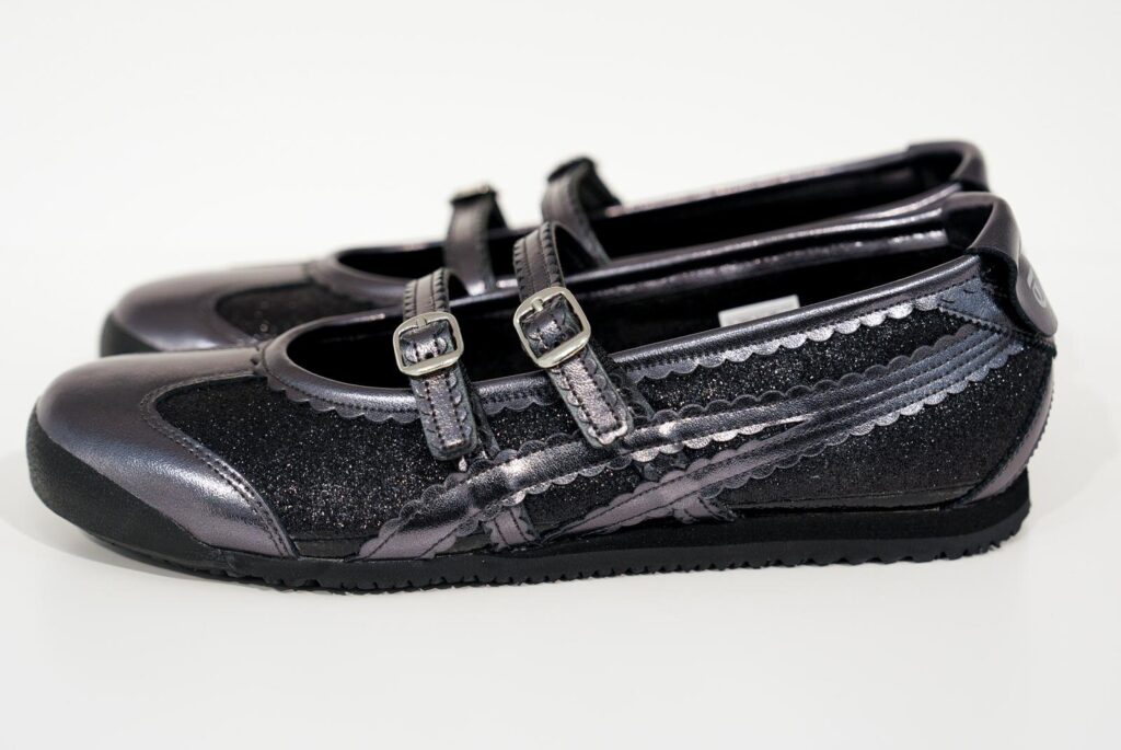 一方の「メキシコ 66 TGRS」は、スニーカーのデザインを取り入れたヒール付きパンプス。グリッターの輝きが女性らしい足元を演出し、パーティーシーンにも映える。厚底タイプの「デレシティ」は、トレンド感のあるシルエットで、ストリートスタイルにもフィット。存在感のあるソールがスタイルアップ効果を叶えてくれる。