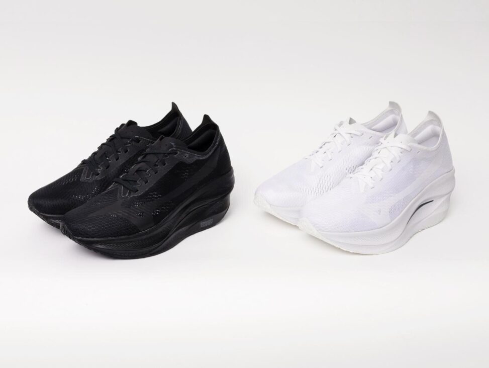 今回のコラボレーションでは、その高機能モデルを、ミズノ通常ラインには存在しない“潔いワントーン配色”で再構築。カラーはブラックとホワイトの2色展開で、アッパーのメッシュ素材からシューレース、ソールの細部にいたるまで徹底して単色でまとめている。余計な装飾を削ぎ落とした無駄のないデザインは、コム デ ギャルソンらしいミニマルさと研ぎ澄まされた空気感が際立つ。