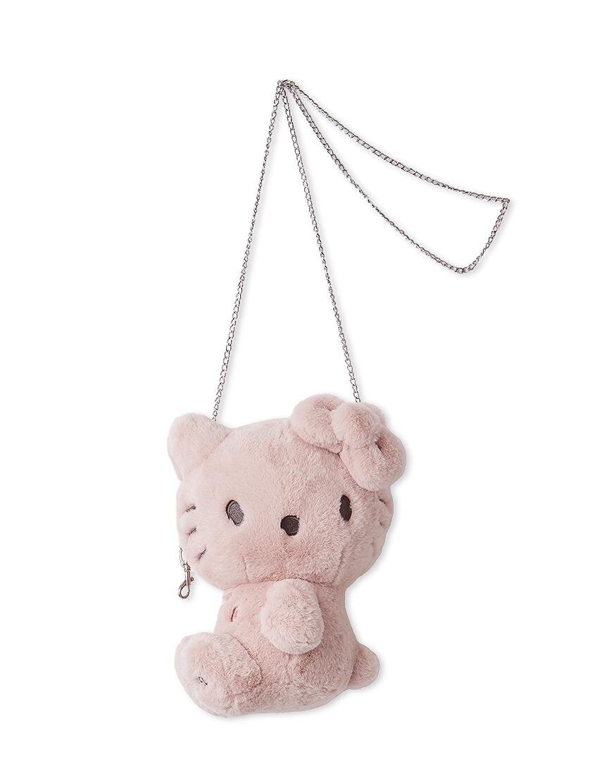 コレクションの中でもひときわ目を引くのが、ハローキティの姿そのままをかたどった「ぬいぐるみショルダー」。ふんわりとしたエコファーをまとったピンク・サックスブルー・ブラックの3色に加え、よりモードに楽しめるフェイクレザー素材のブラック&ホワイトも用意。後頭部には小さなファスナーが隠されており、リップやイヤホンなどの必需品をさりげなく収納できる。ショルダーチェーンとカラビナが付属するため、バッグとしてはもちろん、存在感あるチャームとしても活躍するアイテムだ。