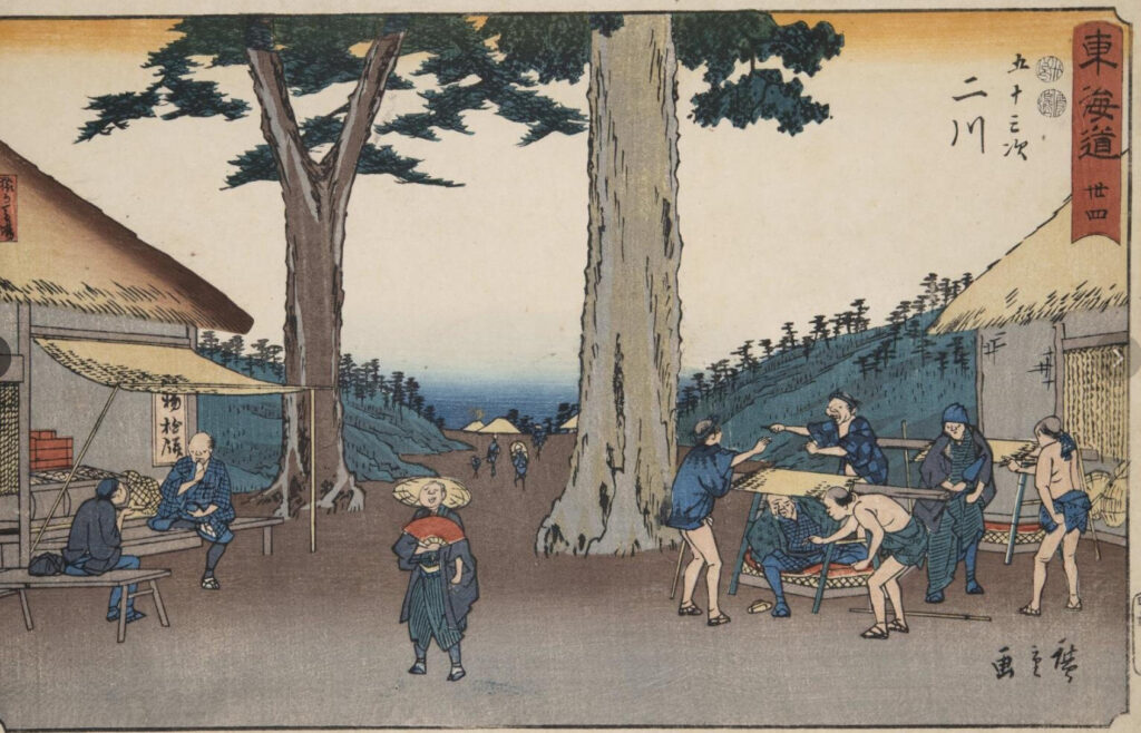 会場には、歌川広重の代表作であり、画家としての地位を決定づけた「東海道五十三次」をはじめ、葛飾北斎、歌川国芳、小林清親など、時代・画風が異なる150点以上の作品が並ぶ。旅路を行く男性、茶屋でくつろぐ商人、荷物を運ぶ職人など、多種多様な“おじさん”の姿を見比べてみると、絵師たちが持つ観察眼の鋭さや、人物表現に込めた遊び心が見えてくる。
