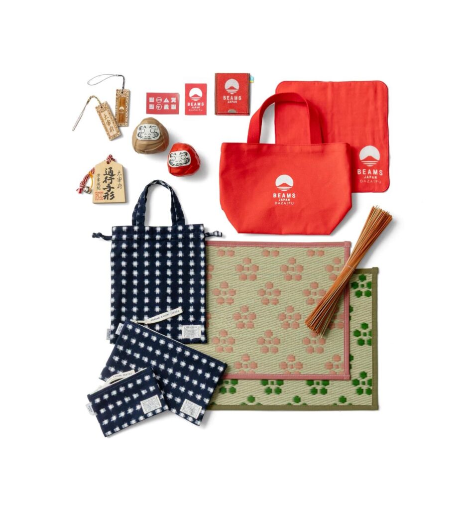 新店舗は、太宰府の街並みに溶け込む和の意匠を取り入れた2階建て構造。館内には、地域の銘品や人気雑貨、ファッションアイテム、文房具など多彩なアイテムが約180品目並ぶ。全国の名産を発信するビームス ジャパンらしい品揃えに加え、福岡のメーカーや職人と協働した“太宰府店限定アイテム”が豊富に展開されるのが特徴だ。