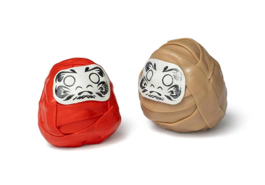注目の限定グッズのひとつが、150年以上の歴史を持つ久留米の老舗シューズメーカー・ムーンスター(MOONSTAR)と手掛けた「ラバーだるま」。スニーカー製作時に出る端材をランダムに巻き付けて仕上げたオブジェで、日本の縁起物“だるま”をモダンに再構築したユニークなアイテムとなっている。
