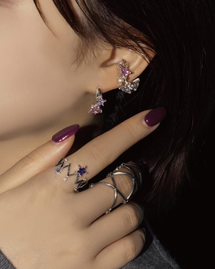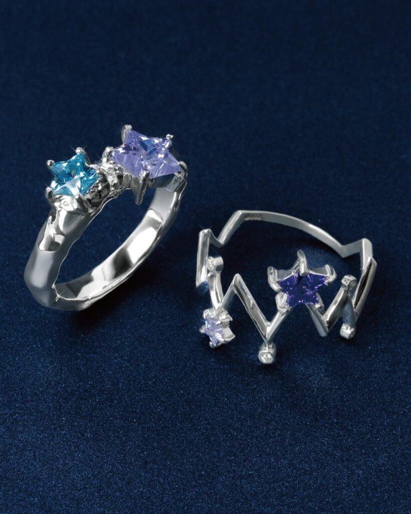 さらに今回のイベントでは、初登場となる新デザインも仲間入り。星座を思わせる立体的なフォルムのリングやイヤーカフ、そして大小2つのスターを並べたリングやフープピアスなど、夜空のきらめきをそのまま閉じ込めたようなデザインがそろう。星座シルエットのシリーズは動きを感じるようなダイナミックな造形で、いつものコーディネートに華やかなアクセントをプラスしてくれる。一方、2つのスターをあしらったデザインはシンプルで使いやすく、選ぶストーンの色によって上品にもカジュアルにも表情を変えるのが特徴だ。