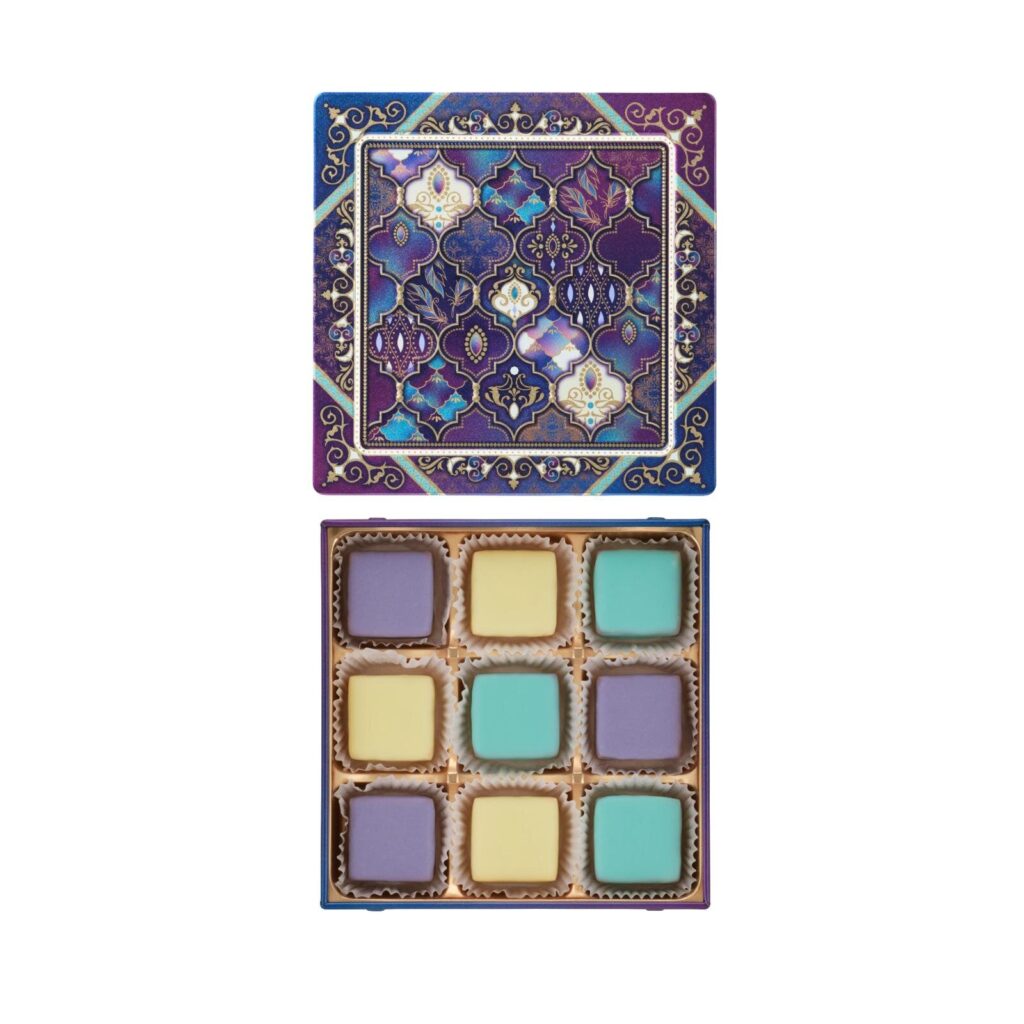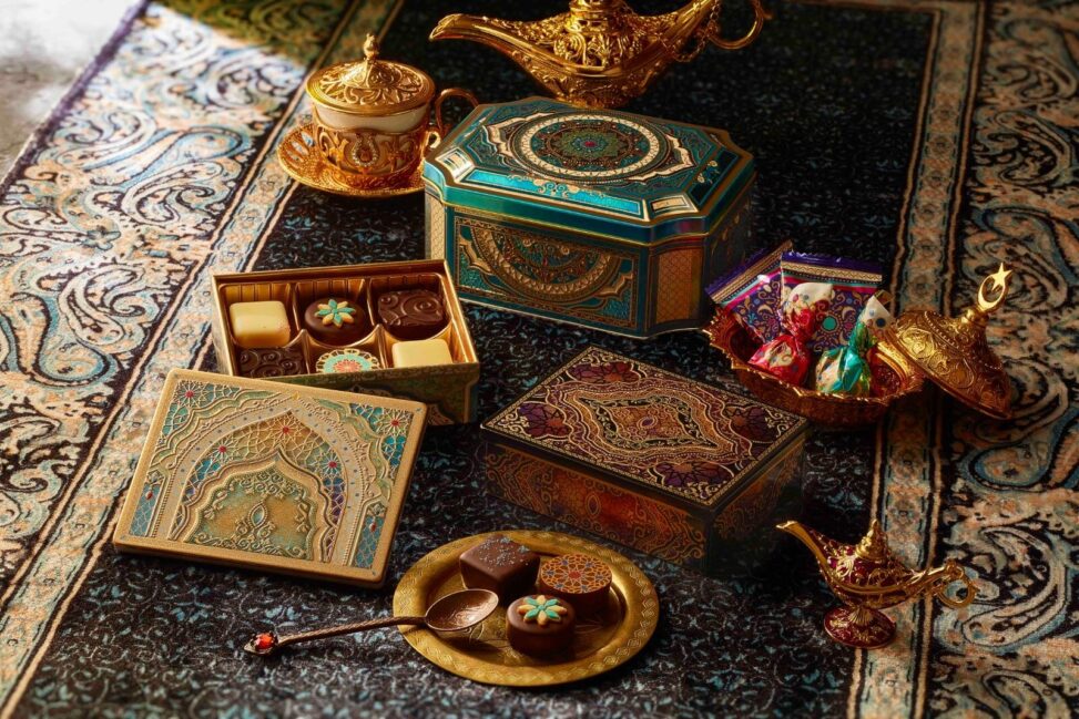 「ジャミーラ」は、アラビア語で“美しい”を意味する言葉を名に冠したシリーズ。毎年、エキゾチックな装飾や煌びやかな色彩を取り入れ、中東の幻想的な世界観を閉じ込めたチョコレートを提案している。2026年は、より一層“煌めくアラビア”をテーマにした新作缶やアソートが登場し、まるで物語の中に迷い込んだような華やかな世界へ誘ってくれる。
