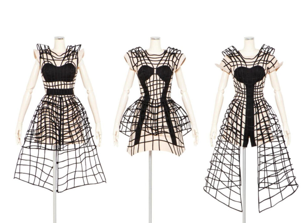 一方、2016年以降はよりダイナミックな衣装の挑戦が増えていく。たとえば「TOKYO GIRL」(2017年)のMV衣装、ライブツアー「polygon wave」(2021年)で使用された衣装では、動きに合わせて揺れるディテールや、ラインの曲線美を活かした構造など、パフォーマンスを際立たせるデザインが多く採用されている。Perfumeの進化を支えた衣装のクリエイティビティを実感する展示だ。