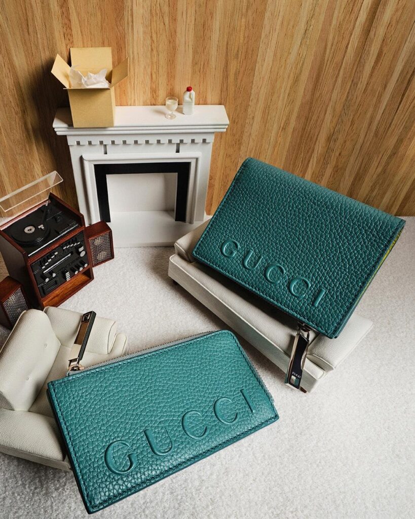 一方、メンズ向けには鮮やかなターコイズブルーを基調に、内側にイエローを組み合わせた遊び心のある新色がラインナップ。エンボス加工によって大胆に表現された“GUCCI”ロゴが特徴的で、コインウォレットやカードケースなど、日常使いしやすいサイズに落とし込まれている。シンプルでありながらアイキャッチなカラーリングが魅力だ。