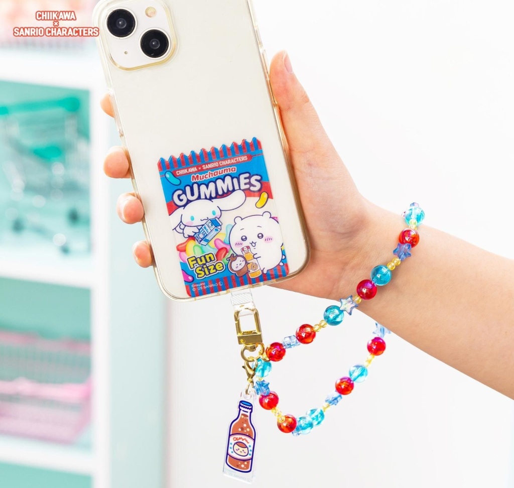 また、「スーパーマーケット」をテーマにした雑貨シリーズも必見。カラフルなお菓子パッケージを思わせるポーチやキーホルダー、シャカシャカ動く“おかしキーホルダー”、ビーズストラップ、ジッパーバッグなど、ワクワク感を誘うアイテムが並ぶ。ちいかわやサンリオキャラクターズが楽しく買い物している様子を描いたデザインは、眺めているだけで気分が明るくなる。