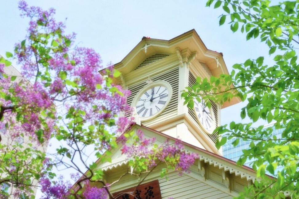 札幌市時計台を訪れたら、記念写真を撮るのも旅の楽しみのひとつ。敷地内の指定スポットではスマートフォンを縦構図で構えると建物全体をきれいに撮影できます。また、道路を挟んだ正面にある「札幌MNビル」2階のテラスや、近隣の札幌市役所裏手、さらには市役所19階の展望回廊(夏季限定)も、上から時計台を望めるおすすめの撮影ポイントです。