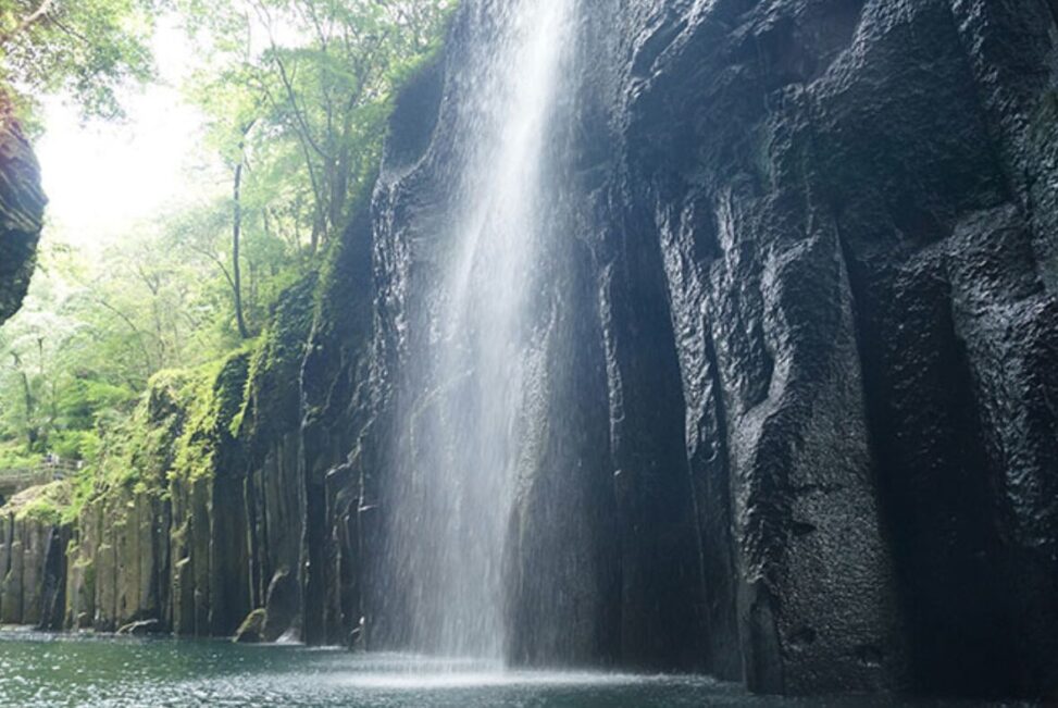 峡谷の中でも特に有名なのが、落差17mの「真名井の滝」。天孫降臨の神話にも登場し、「日本の滝百選」にも選ばれた名瀑です。滝見台から望む景色はもちろん、貸しボートに乗って水面から見上げれば、迫力と荘厳さを全身で感じられます。