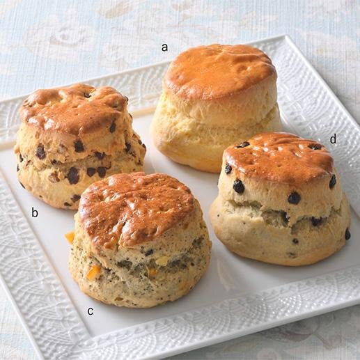 ・〈ブラウンズ・ホテル〉スコーン4種 プレーン/ピーカンナッツチョコ/アールグレイカシスオレンジ/ブルーベリー&クランベリー 各389円 ※パート2