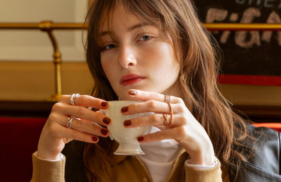 まず注目したいのは、リングシリーズ。コーヒー豆のような天然石や、角砂糖が溶けていく様子を表現したクォーツ、淹れたてのコーヒーに浮かぶ泡をイメージした粒感のデザインなど、日常使いにもなじむ洗練された仕上がりとなっている。さらに、カップの持ち手を連想させるダブルリングや、カップの中で揺らめくコーヒーの渦を表現したリングカフセットなど、遊び心あふれるアイテムも展開。
