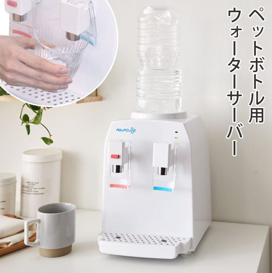 一般的なウォーターサーバーは専用の大きなボトルを注文して交換する仕組みが多いですが、「AQUACUBE 2」は市販のペットボトルをそのまま利用できます。