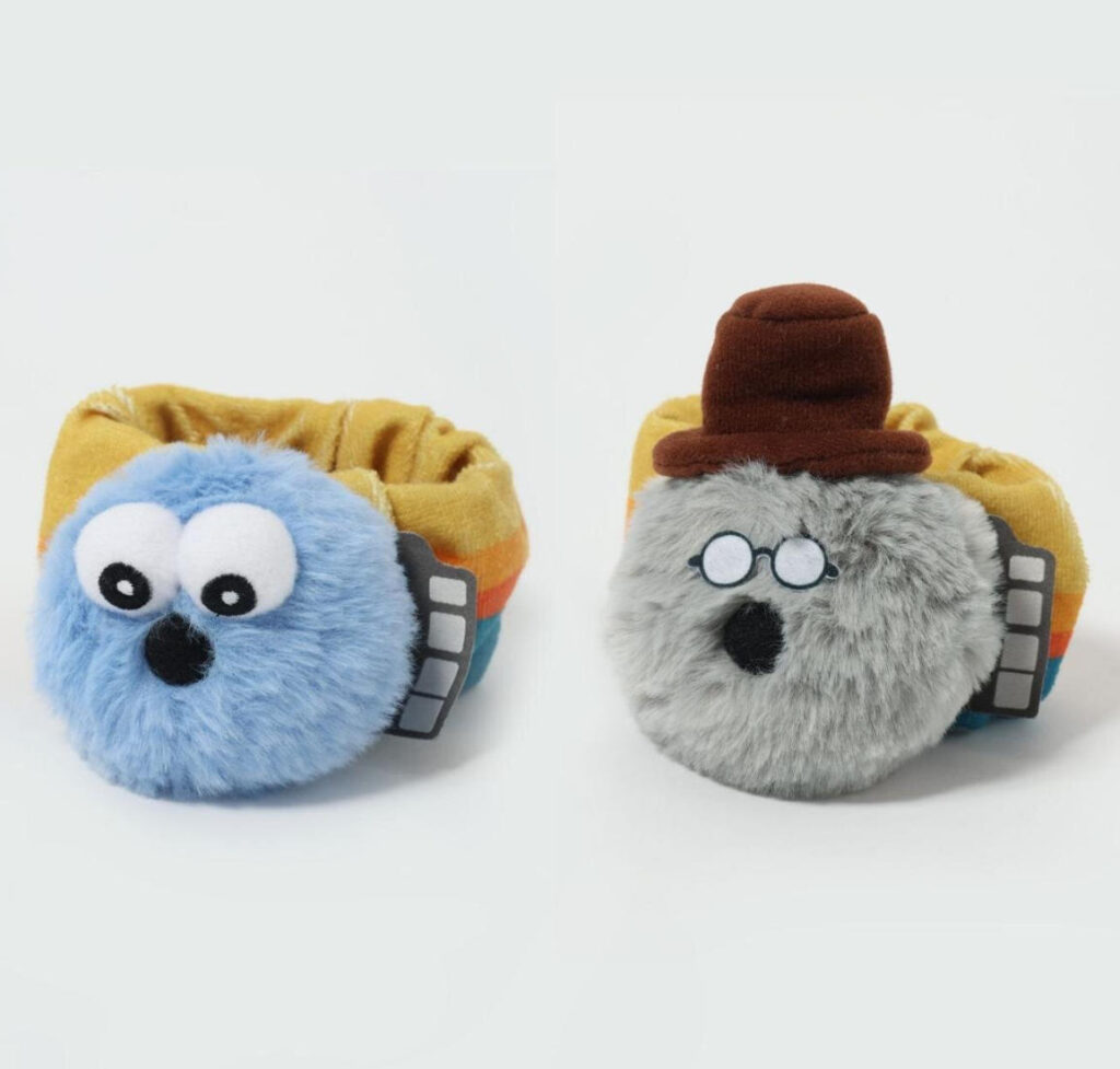 まず注目したいのは「ウォッシュバンド」。両手にスンスンとゾンゾンの顔をあしらったデザインで、ふんわりとしたぬいぐるみのような表情がとても愛らしい。洗顔時に着ければ、日常のルーティンがちょっと楽しくなる。さらに、バンド部分は吸水性に優れており、袖や周囲を濡らしにくい実用性も兼ね備えている。