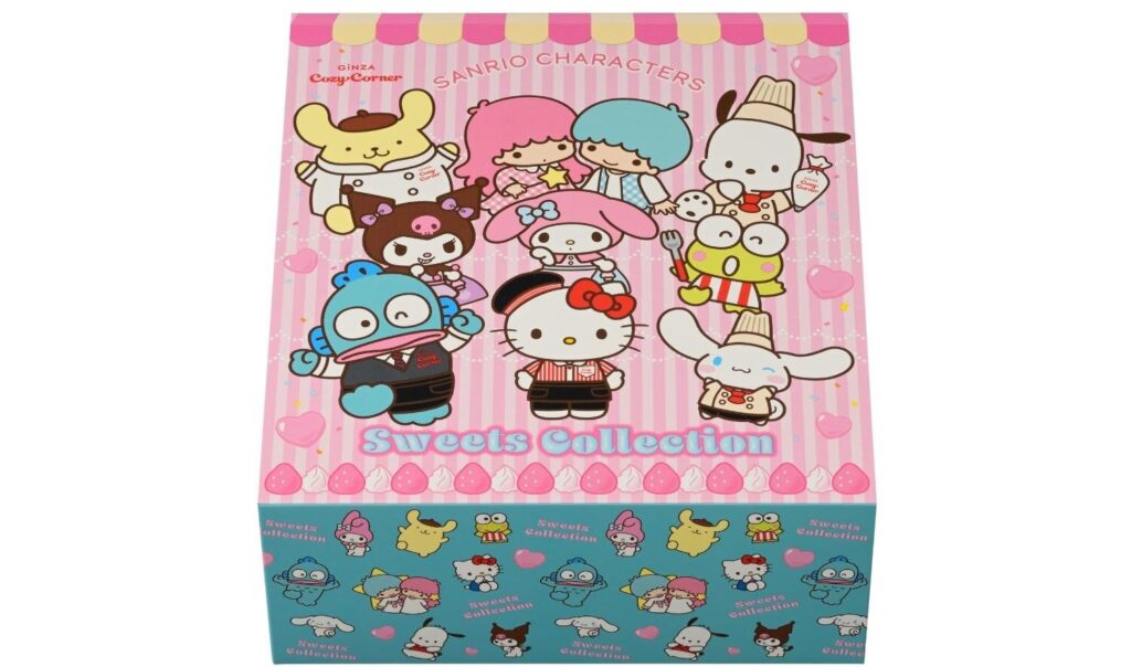 また、パッケージデザインも遊び心にあふれている。銀座コージーコーナーの店員に扮したキャラクターたちが描かれており、赤と白のストライプ制服姿のハローキティや、グレーベストを着たハンギョドン、パティシエスタイルのシナモロールなどが、お客さんとして訪れるマイメロディやクロミ、けろけろけろっぴを迎えるというストーリー性のある仕上がりになっている。箱を開ける瞬間から楽しい気分になれる限定仕様だ。
