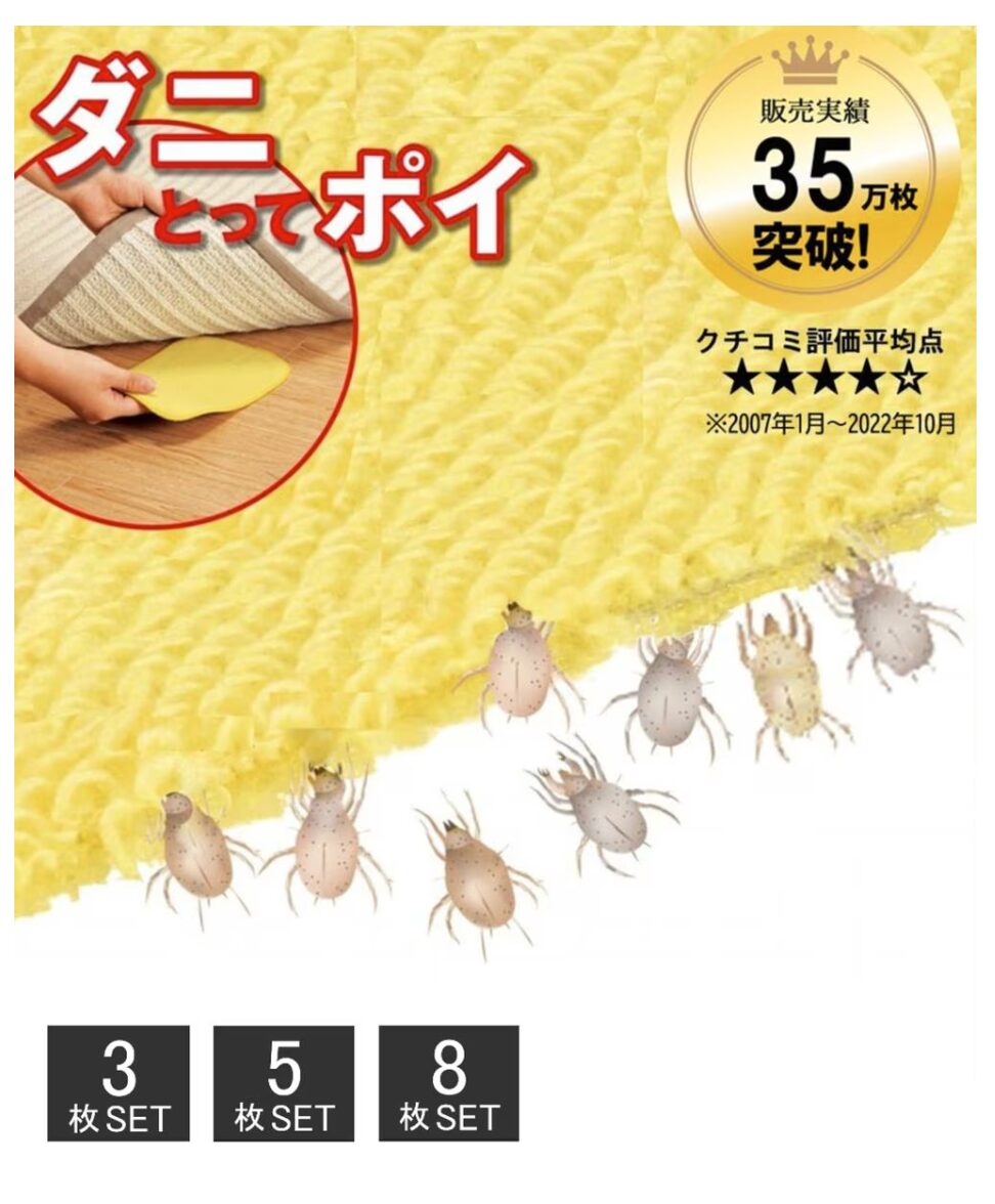 「ダニ捕ってポイ」は、布団やカーペットの下に敷くだけで、簡単・安全にダニを捕獲できる便利なマットです。食品添加物使用で小さな子どもやペットがいる家庭でも安心。強粘着の5層メッシュ構造で逃げることなく捕獲し、使用後はそのままゴミとして処理可能です。梅雨前やダニの多い季節に備えて、布団やカーペットの下に設置するだけで、快適で清潔な生活空間を保てます。