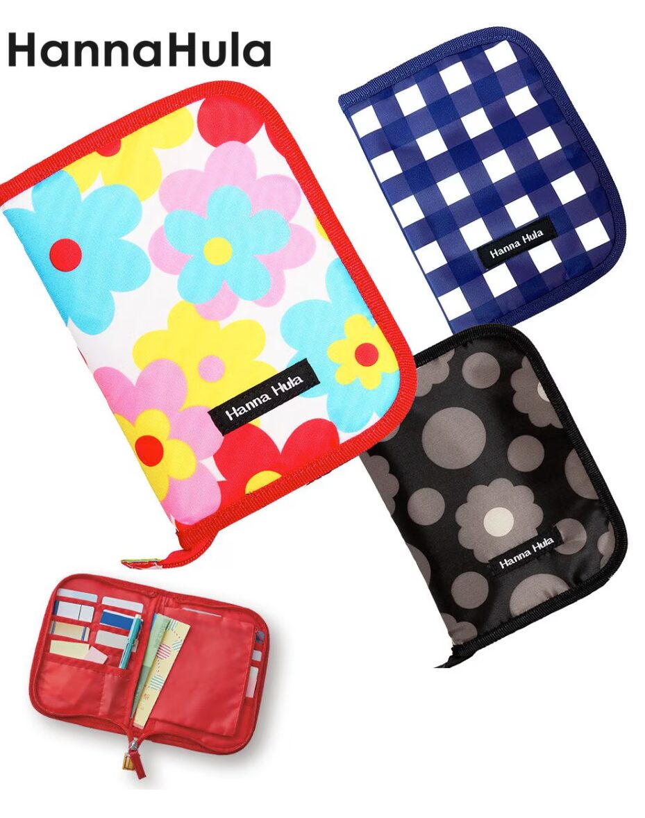 Hanna Hula お薬手帳ケースは、日常生活で増えがちなカードや通帳、お薬手帳をすっきりまとめて収納できる便利アイテムです。MサイズとLサイズの2種類があり、用途や持ち物に合わせて選べます。はっ水加工で汚れに強く、カードホルダーやペンホルダーなどの工夫も充実。家庭での整理整頓はもちろん、外出時の持ち運びにも便利です。整理整頓が苦手な方や忙しい方でも、これひとつでスッキリと持ち物を管理できるおすすめのアイテムです。