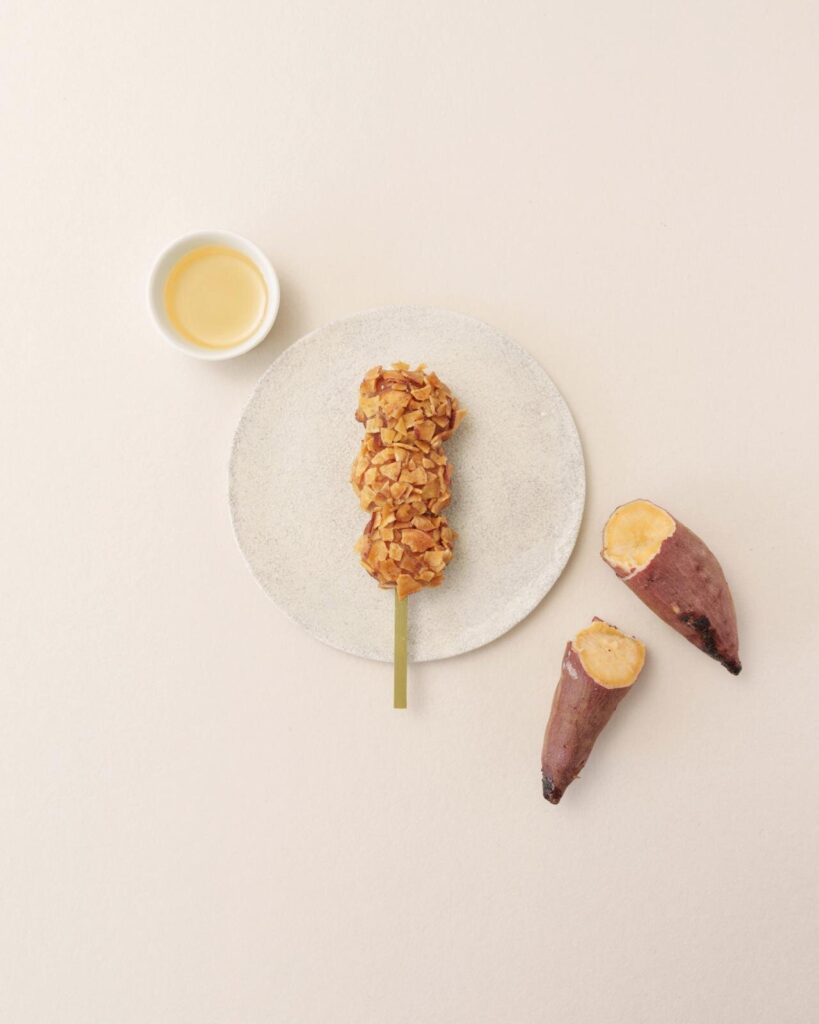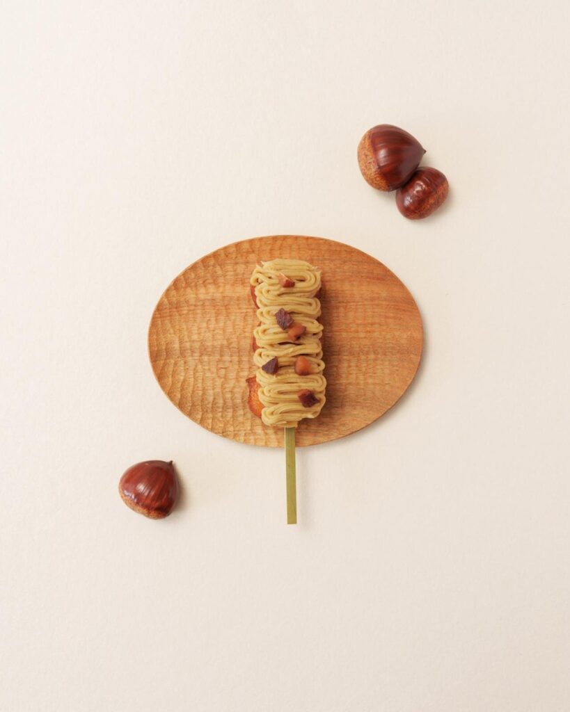「おだんごドーナツ」は、もちもちとした生地のドーナツをだんごのように串に刺して仕上げた遊び心ある一品。2025年版では3個セットの串仕立てとなり、国産の和栗やさつまいもなど旬の素材を贅沢にトッピング。見た目にも華やかで、味わいと食感の両方を楽しめるラインナップとなっている。