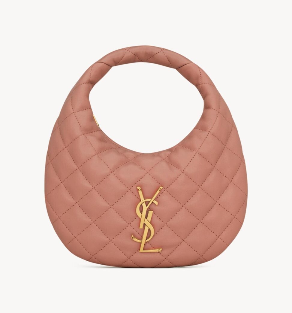 「イカリーノ」は、サンローランを代表するアイコンバッグ「イカール(ICARE)」から派生したミニサイズモデル。ボディとハンドルが一体となった緩やかなカーブのフォルムが特徴で、シンプルでありながらモダンな印象を放つ。バッグ表面にはフラットなロサンジュキルティングを施し、フロントにはジュエリーのように輝くハンドクラフト仕上げのカサンドラロゴが存在感を示す。