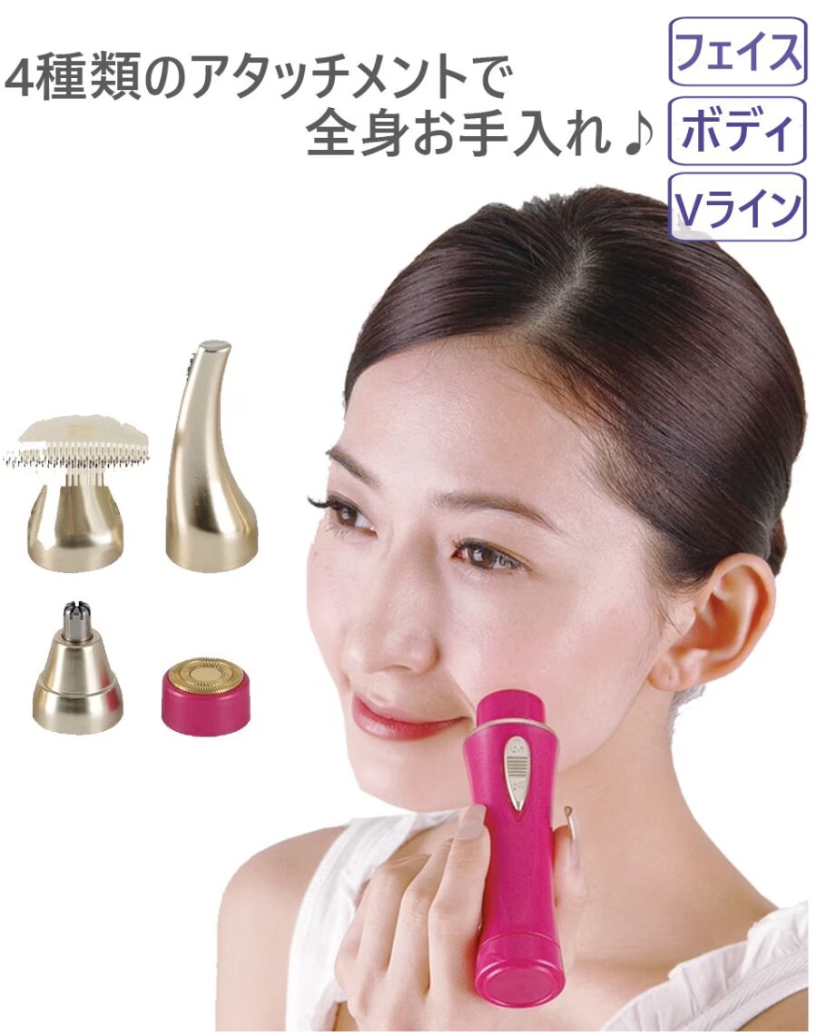 4種類のアタッチメントで顔・眉毛・鼻毛・脇・ビキニラインをカバー