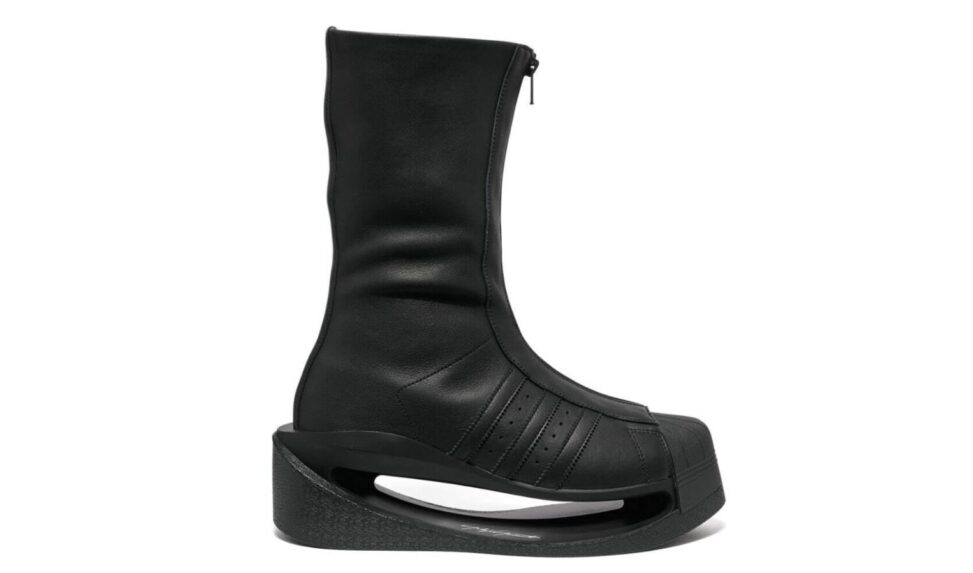 ベースとなったのは、アディダスを代表する名作「スーパースター」。そのクラシカルなDNAを残しつつ、現代的なブーツへと再構築した。アイコニックなトゥのフォルムを引き継ぎながら、ハイトップデザインで存在感を増幅。ソールの空洞デザインと相まって、過去と未来が交錯するような仕上がりとなっている。