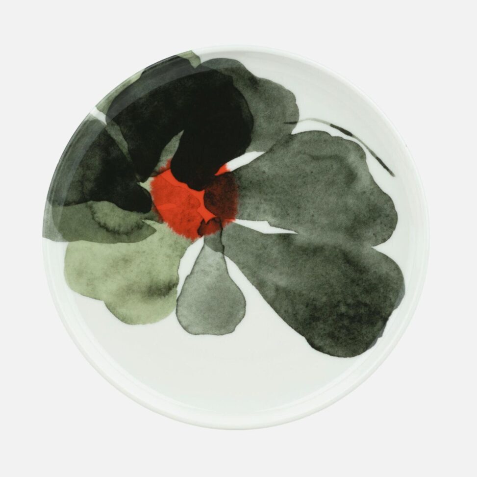 今回の新作は、花や植物を題材にしたデザインが豊富に揃い、日常の食卓やインテリアを華やかに演出するラインナップとなっている。中でも注目は、水彩画のような柔らかなタッチで花柄を描いた「ヴァルシ(Valssi)」シリーズ。深みのあるダークグリーンとレッドを基調にしたマグカップや20cmサイズのプレートが展開され、クラシックでありながらモダンな空気感を漂わせる。また、同柄をあしらったクッションカバーは、インテリアに落ち着いたアクセントを加えてくれる。