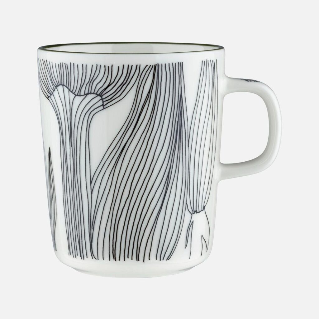 さらに、つぼみが開花する瞬間を捉えた「クカット プーケアヴァット」パターンの新作も登場。みずみずしい草色のディテールを取り入れたマグカップやボウル、プレートに加え、ネイビー地にホワイトのラインを走らせたクッションカバーなどが展開される。線画で描かれたシンプルなデザインながら、空間に静かな存在感を与えるのが特徴だ。