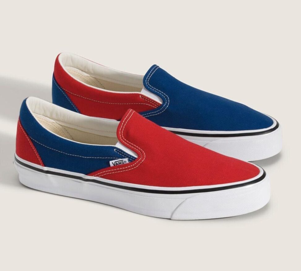 カラー展開は2種類。鮮やかなレッド&ネイビーのコンビはクラシカルなスケートシーンを思わせ、一方のブラック&ブルーはよりモダンで都会的な印象を放つ。踵部分にはスケートボードを模したロゴが入り、細部まで“OTW by Vans”らしいこだわりが光る。