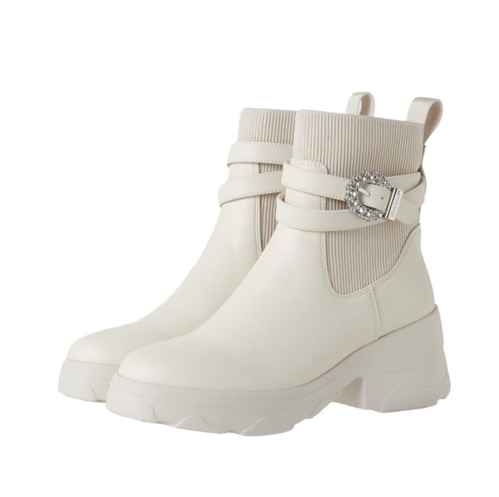 今回の注目アイテムは、存在感あるショートブーツ。ボリュームのあるフォルムながら、2連ベルトとクリスタルバックルを合わせることで、ハードすぎず上品な印象に仕上げた。フック式バックルはワンタッチで着脱できる仕様となっており、デザイン性だけでなく実用性も兼ね備えている。さらに、軽量かつ弾力性に富んだIPソールを採用したトラックソール、厚さ8mmの高反発クッションインソールを搭載することで、長時間の着用でも快適な履き心地を実現。見た目の存在感と歩きやすさを両立させたブーツだ。