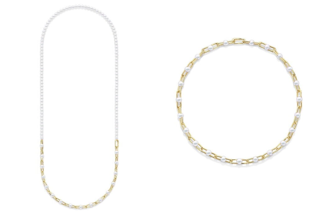 ユニセックスで楽しめる「ファイン リンク(fine link)」は、イエローゴールドの輪にパールを組み合わせ、チェーン風のデザインに仕上げたコレクション。シンプルながらも洗練された佇まいが魅力で、ロングネックレスとして大胆に取り入れるのはもちろん、チョーカータイプとレイヤードしても映える。アシンメトリーに身に着ければ、スタイリングに遊び心を加えることもできる。