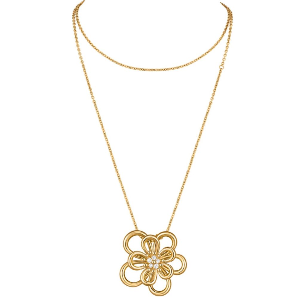ラインナップは、リング、アントレ レ ドア リング、イヤリング、ペンダント、そしてクリップペンダントの5種。いずれも大ぶりの花モチーフが魅力で、イヤリングやペンダントは顔まわりを華やかに引き立てる。中でもクリップペンダントは、ペンダントトップを取り外してクリップとしても使用可能な2WAY仕様。スカーフやジャケットのアクセントとしても活躍する万能アイテムとなっている。