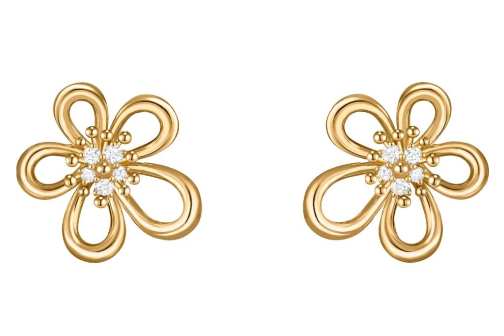 「フラワーレース」では、太陽の光を浴びて咲く花の瞬間を、オープンワークを施したイエローゴールドの花びらで再現。中央の雌しべには繊細なゴールドビーズとダイヤモンドを組み合わせ、自然に咲き広がる花の姿を鮮やかに描き出している。アシンメトリーな構図をあえて取り入れることで、野に咲く花の自由な佇まいを巧みに表現しているのも特徴だ。