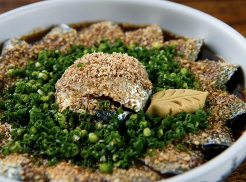 博多グルメといえば外せないのが『ごまさば』。ここでは、獲れたての天然生さばにすりごまをたっぷりまぶし、ネギを散らした逸品が堪能できます。脂がのったプリッとした身と香ばしいごまの風味が絡み合い、博多を訪れたらまず味わいたい名物料理です。