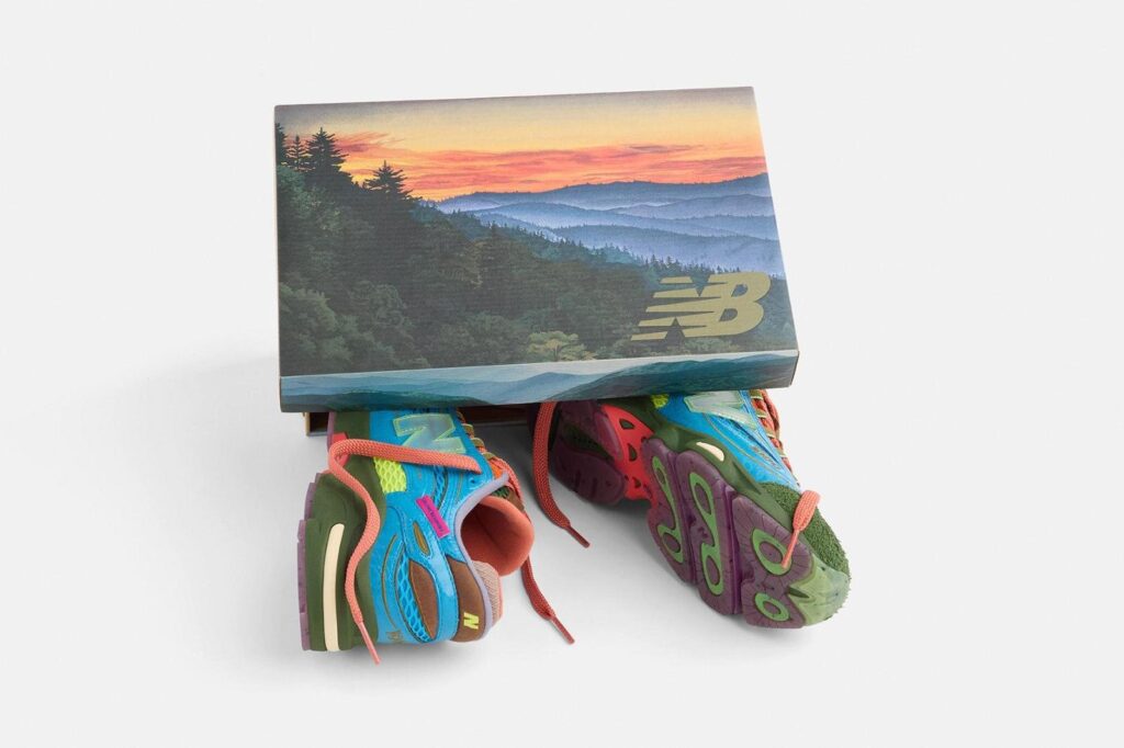 今回のモデルは、アメリカ合衆国東部に位置する雄大なスモーキー山脈にインスピレーションを得てデザインされた。山々を包み込む霧や、夕暮れ時に変化する空の色彩、そして深い森林の風景をシューズのディテールに落とし込んでいる。ブルーは山脈の稜線を、コーラルピンクは夕焼けを、グリーンは広大な森を表現。自然が織りなすカラーパレットをスニーカーに再解釈している点が特徴だ。