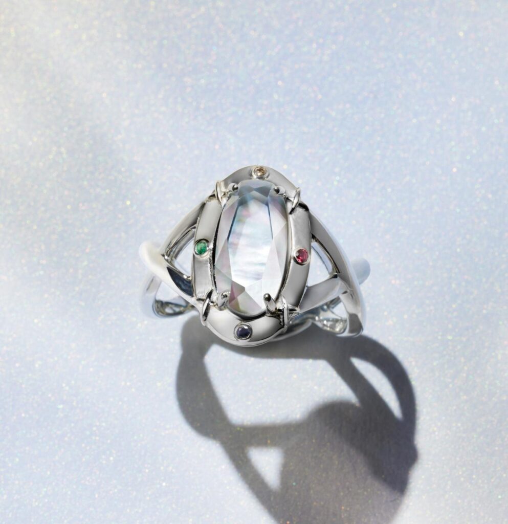 さらに数量限定で、幸運の女神フォルトゥーナをテーマにしたリングもラインナップ。虹色のシェルにクォーツを重ねた幻想的なダブレットストーンを主役に、ダイヤモンド・ルビー・サファイア・エメラルドの4石を散りばめて四季の調和を表現。アーム部分はインフィニティ(∞)を描き、無限の可能性を象徴するデザインとなっている。