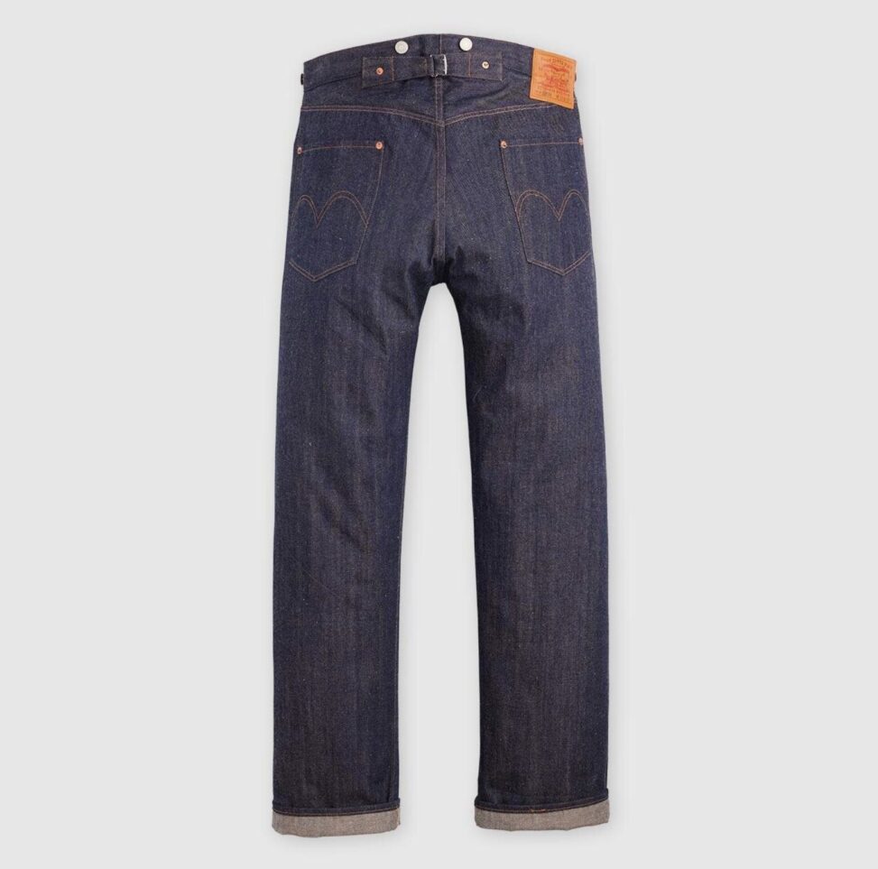 たとえば、ウエスト部分のシンチバックは、当時のジーンズには欠かせないクラシカルな要素。ベルトループが一般化する前、着用者はこのシンチバックやサスペンダーボタンを使ってフィット感を調整していた。また、バックポケットは2つのみで、現在の「501」に受け継がれる弓形のアーキュエイトステッチが施されている。さらに、リーバイスの象徴とも言える「2頭の馬が1本のジーンズを引っ張り合う」デザインが描かれたレザーパッチも健在。これらのディテールが、単なるファッションアイテムを超えて、ジーンズの歴史を物語る存在感を放っている。