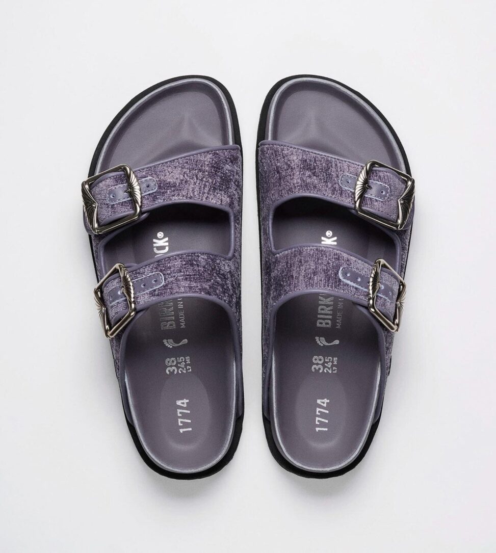 さらに、ベルベット素材を用いた「アリゾナ ベルベット」や、柔らかなスエードの質感を活かした「222 ウェスト スエード」などもラインナップ。どのモデルもユニセックスで楽しめる設計となっており、クラシックなスタイルにモダンなアレンジを加えた、特別感のあるサンダルコレクションとなっている。