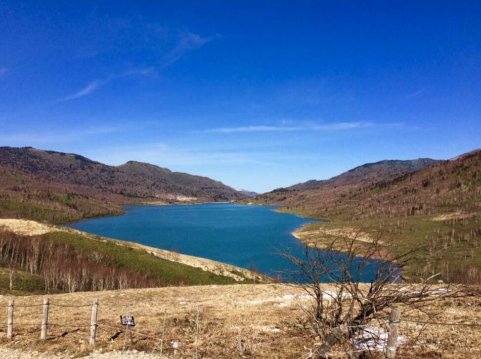もともとは湿原に小さな池が点在していた場所でしたが、戦後に水力発電のためダム化され、現在の姿になりました。湖の水は新潟県側、日本海へと流れていきます。湖畔をぐるりと歩ける遊歩道は「遊歩百選」にも選ばれており、キャンプや釣りも可能。ただし水質保全のため遊泳は禁止です。