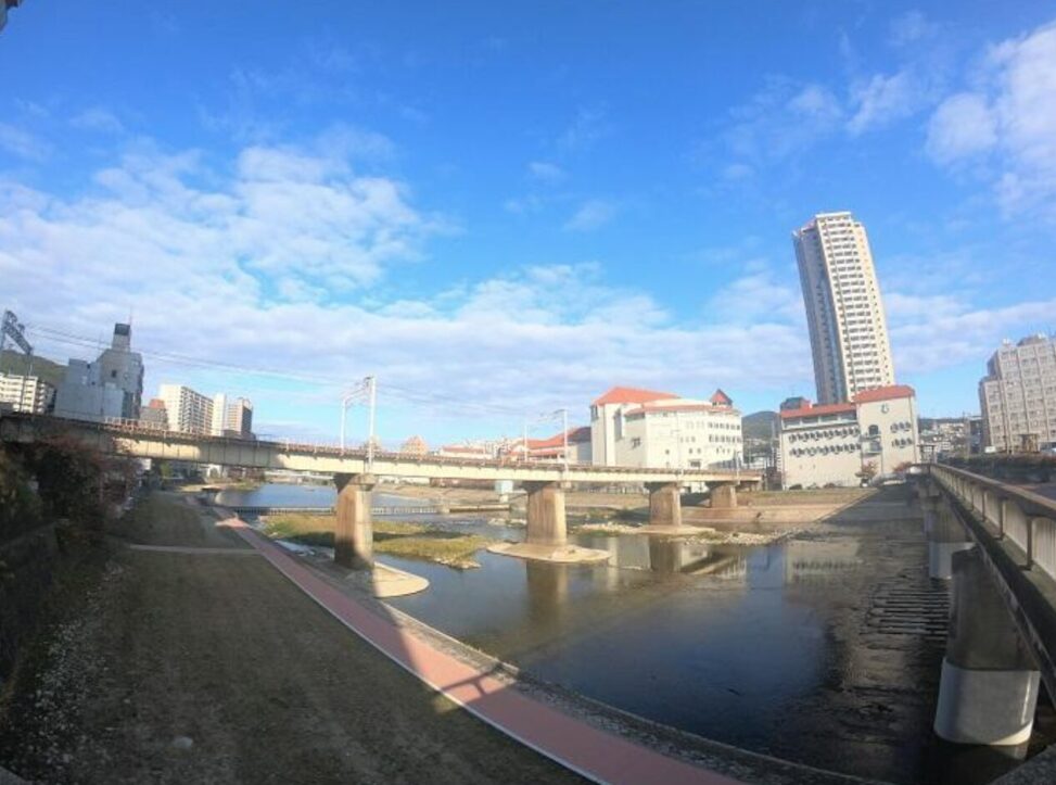 宝塚で最もおすすめしたいのが武庫川沿いの散策です。朝の川辺は空が広く、京都の鴨川にも似た優雅な景色を楽しめます。ウォーキングや犬の散歩を楽しむ人もおり、静かで広々とした河川敷を独占することも可能です。宝塚ホテルを背景に撮る写真も絵になります。
