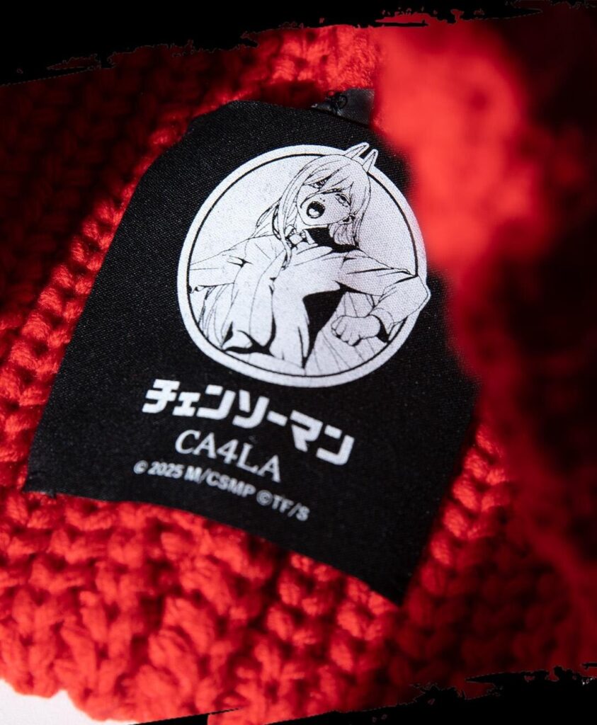 そして、デンジの相棒「パワー」の角をモチーフにしたニットキャップ(8,250円)もラインナップ。メリノウールとアクリルをブレンドした糸をざっくりと編み上げ、2本の角を立体的に再現。カジュアルな雰囲気で、普段使いにも最適なデザインだ。